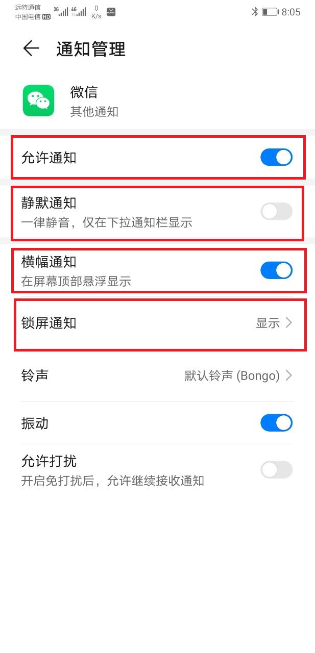 点击 设置-应用设置-应用管理-微信,按如下设置